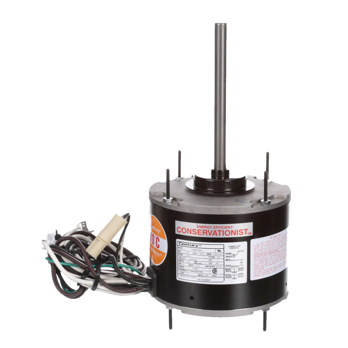 Century - Single Shaft A/C Condenser Fan Motor (2) 1/4 HP 208-230V 60Hz 1075Rpm 1 Spd Cw/Ccw Shaft 1/2"x6-1/2" Ball Bearing F-48 5µF/370V 70°C